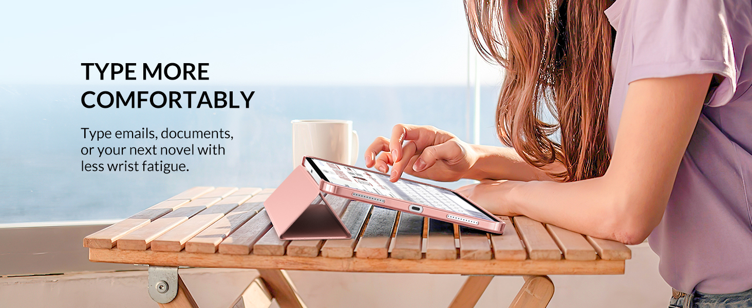 • Angles réglables : connexion magnétique puissante pour créer un support de visualisation stable pour votre tablette. Deux angles sont fournis pour satisfaire vos besoins de visualisation et de saisie. Évitez toute douleur articulaire et libérez vos mains pour d'autres divertissements.