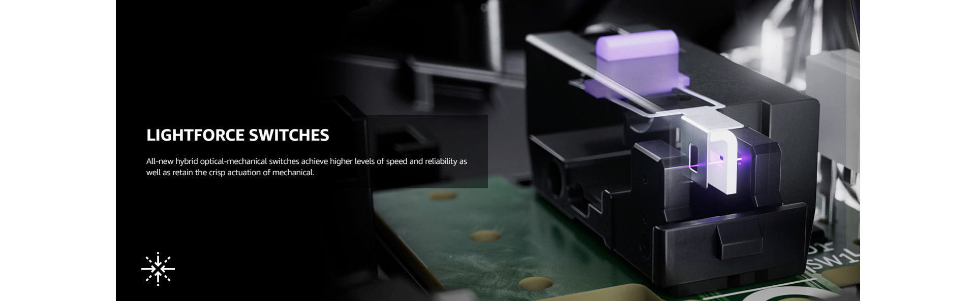 • Boutons LIGHTFORCE : Technologie de boutons hybride optique-mécanique pour une vitesse incroyable et fiable, avec précision et temps de réponse idéale pour des heures de performance de gaming