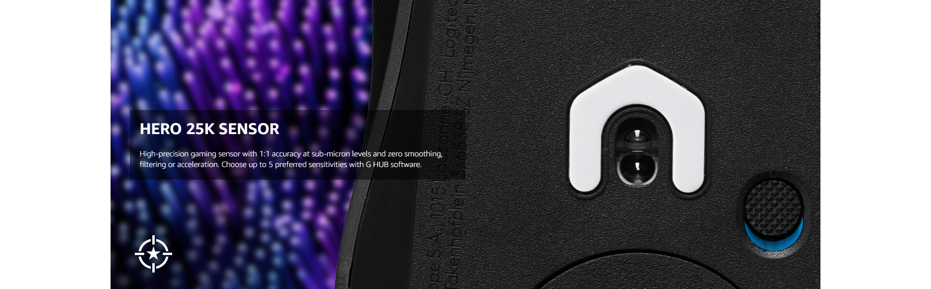 • Capteur Gaming HERO 25K : Précision idéal jusqu'au sub-micron pour une acuité haute-précision sans lissage/filtrage/accélération pour des hautes performances de gaming à chaque fois