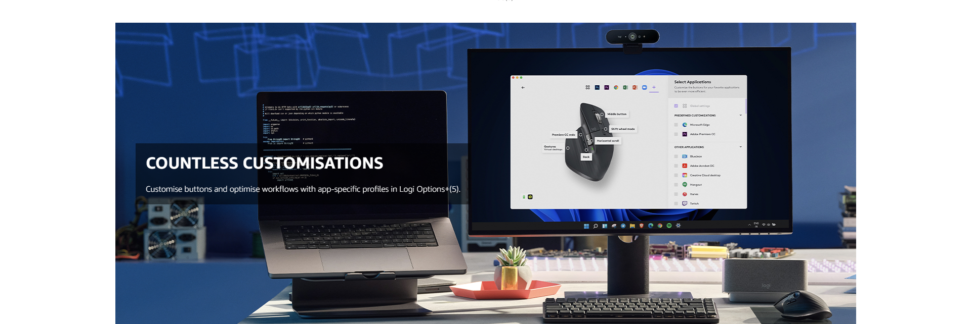 - Logiciel de Programmation: Programmez vos boutons et optimisez votre flux de travail avec les profiles spécifiques de l'App dans la version amélioré de Logi Options+