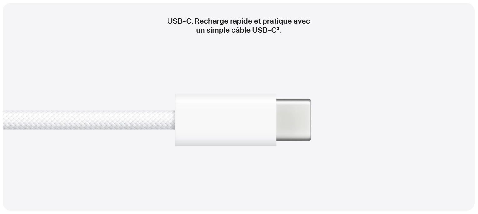 - MAINTENANT AVEC RECHARGE USB-C. Le nouveau connecteur USB‑C vous permet de recharger vos AirPods Max à l’aide du câble que vous utilisez pour recharger vos iPhone, iPad, Mac ou autres appareils Apple.