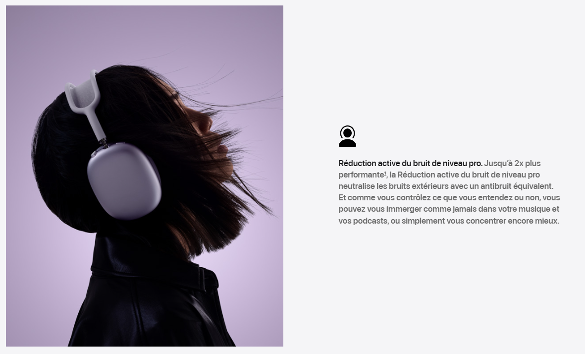 - ÉCOUTEZ SANS DISTRACTION. La Réduction active du bruit de niveau pro élimine jusqu’à 2x plus de bruit de fond, pour vous permettre de vous immerger dans votre musique.