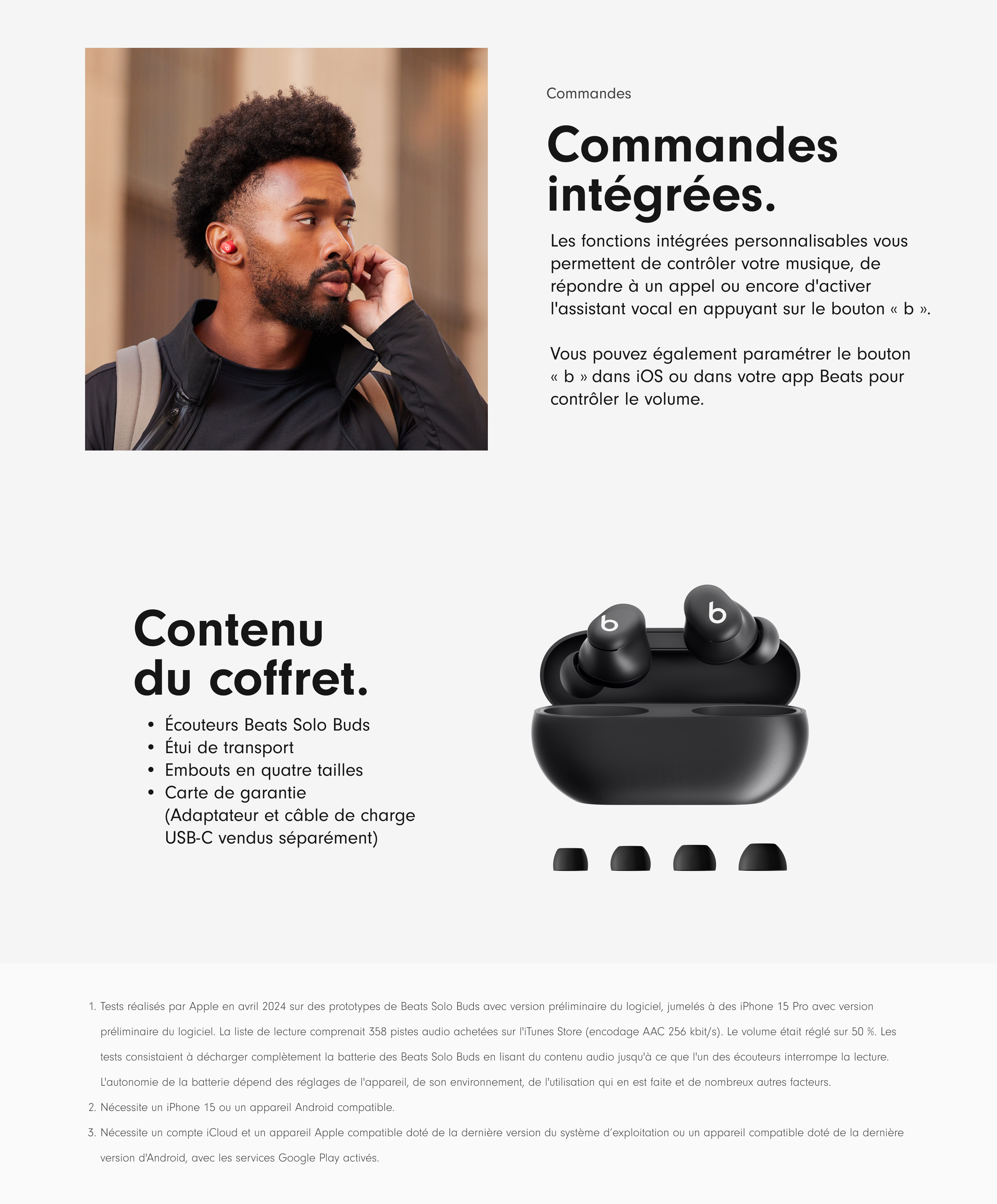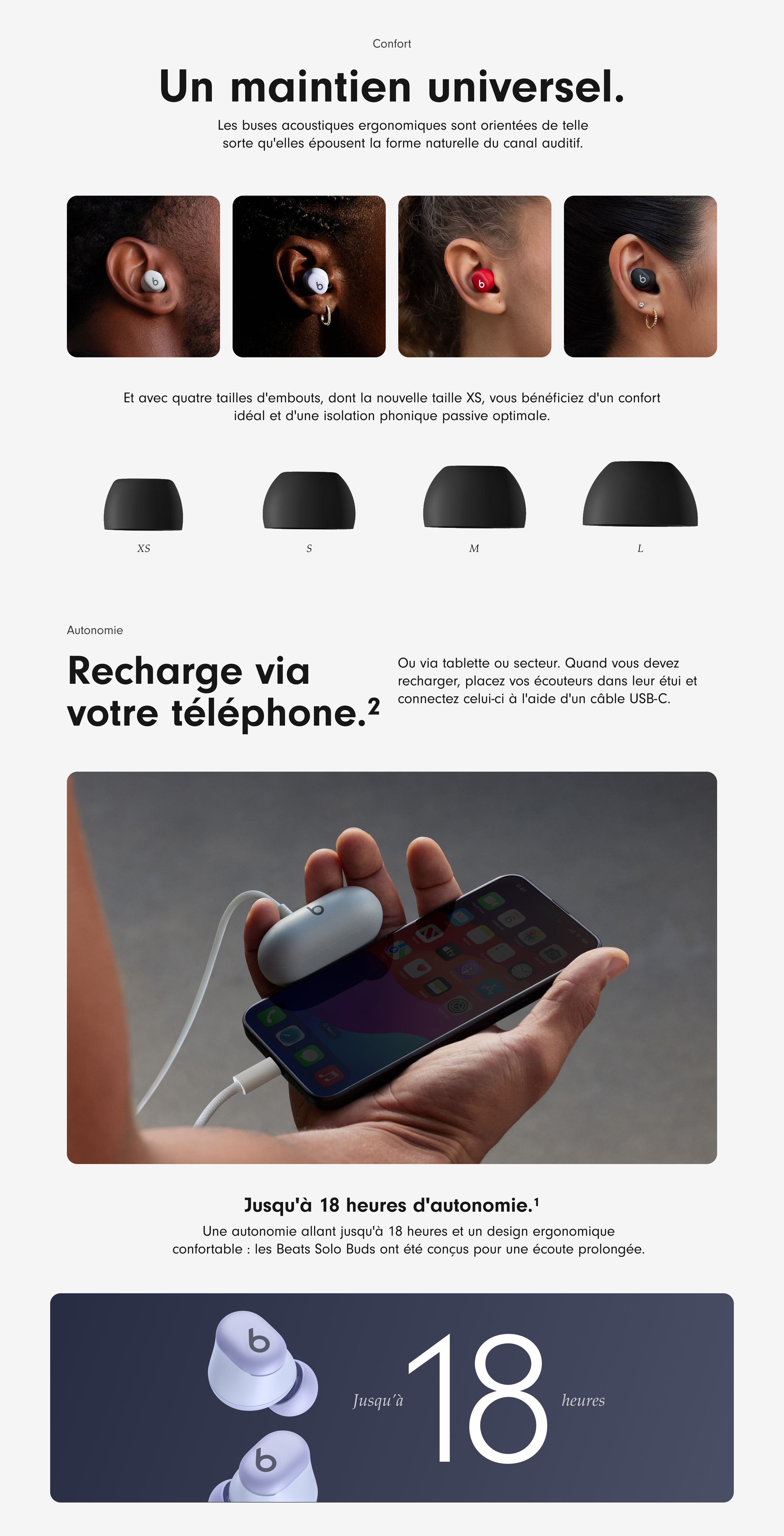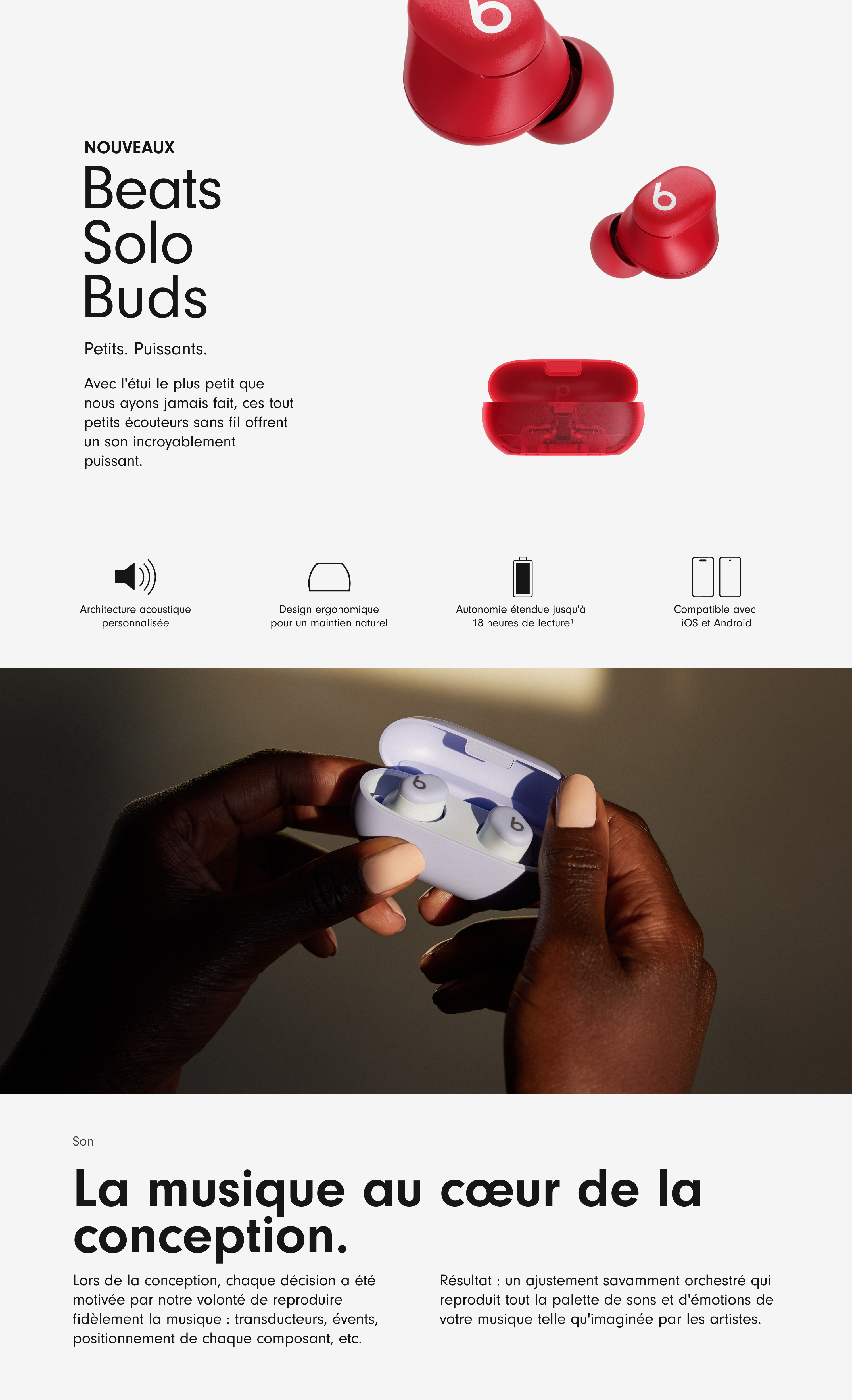 Beats Solo Buds (Écouteurs Bluetooth sans Fil) - Gris Orage Beats Solo Buds (Écouteurs Bluetooth sans Fil) - Rouge Transparent Beats Solo Buds (Écouteurs Bluetooth sans Fil) - Mauve Polaire Beats Solo Buds (Écouteurs Bluetooth sans Fil) - Noir Mat