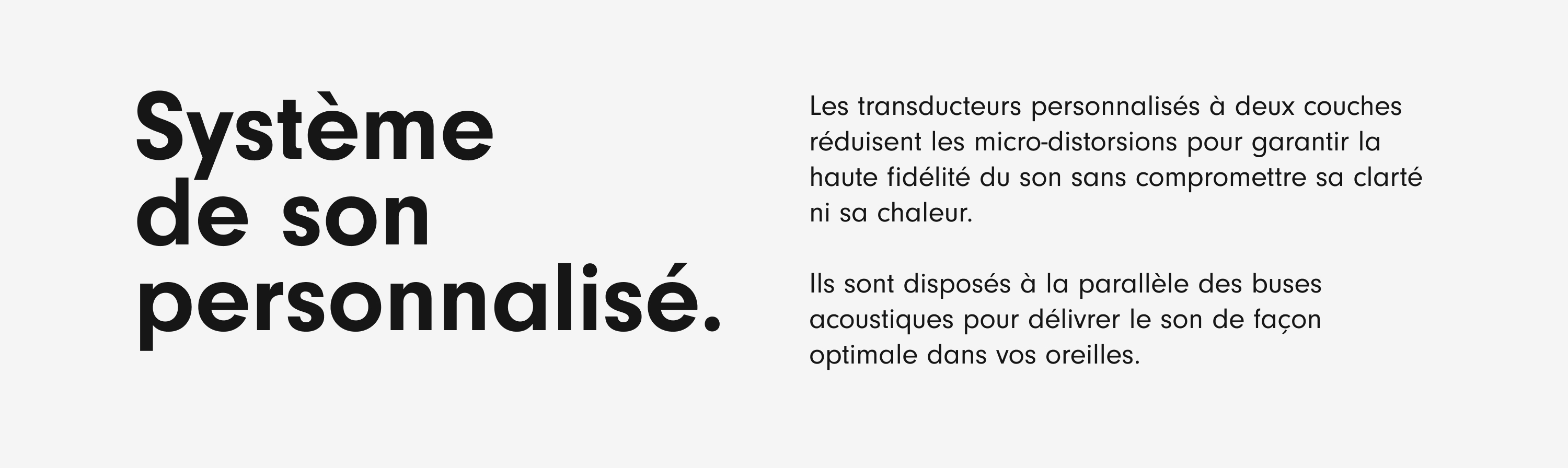 • Les transducteurs à alignement axial savamment positionnés délivrent le son directement dans vos oreilles.