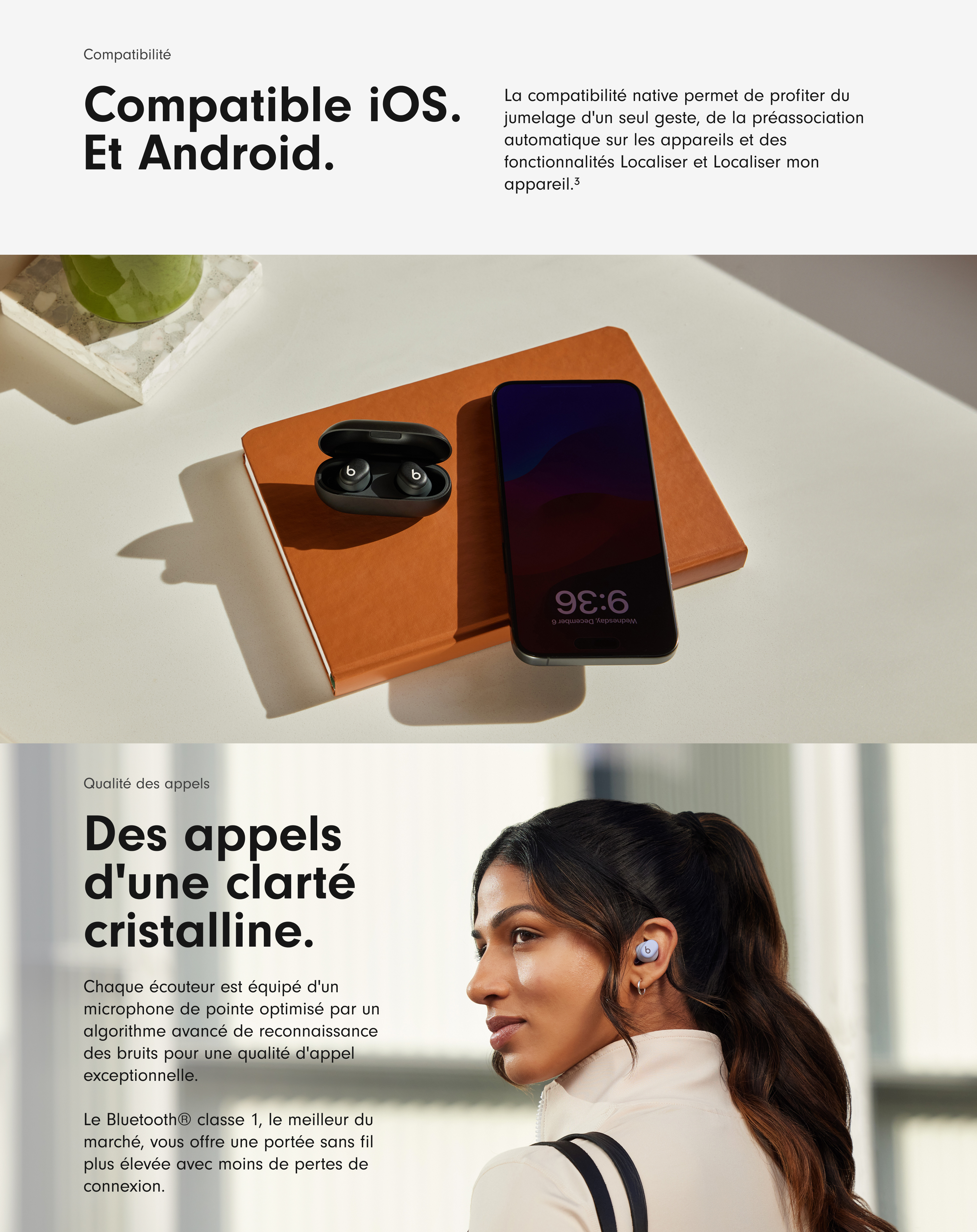 • L'architecture acoustique personnalisée offre un son Beats puissant avec une palette sonore ample et une clarté naturelle.