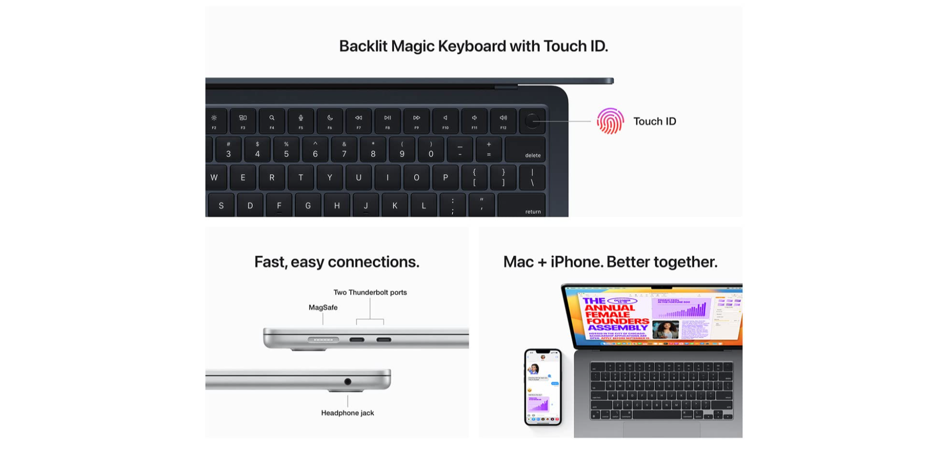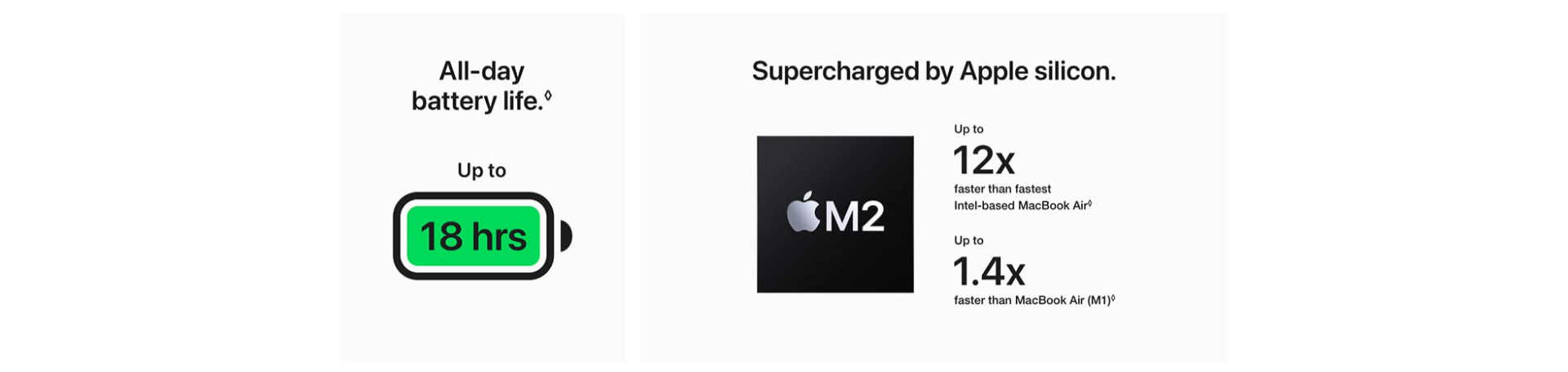 • POIDS PLUME. PUISSANCE M2 – Super portable et super rapide, le MacBook Air avec puce M2 vous permet de travailler, de jouer et de tout faire comme jamais.