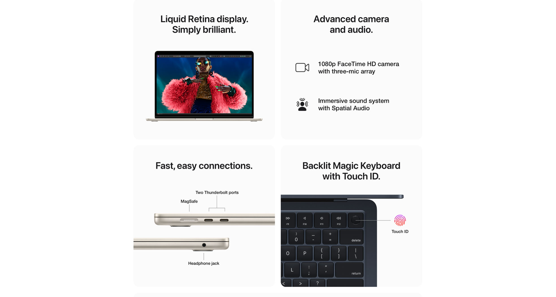 • ÉCRAN SPECTACULAIRE – L’écran Liquid Retina de 13,6 pouces prend en charge un milliard de couleurs.
