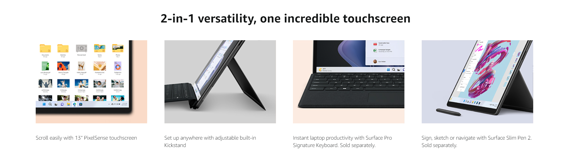 Voyez grand avec l’écran tactile haute résolution PixelSense™ de 13 pouces, avec une fréquence de rafraîchissement allant jusqu’à 120Hz pour une utilisation au stylet* et navigation tactile fluides et réactives.