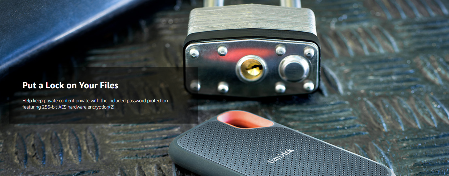 - Aide à garantir la confidentialité de votre contenu privé grâce à la protection par mot de passe intégrée, dotée du chiffrement matériel AES 256 bits. La protection par mot de passe utilise un chiffrement AES de 256 bits et est compatible avec Windows 8, Windows 10 et macOS 10.9 ou plus récent.
