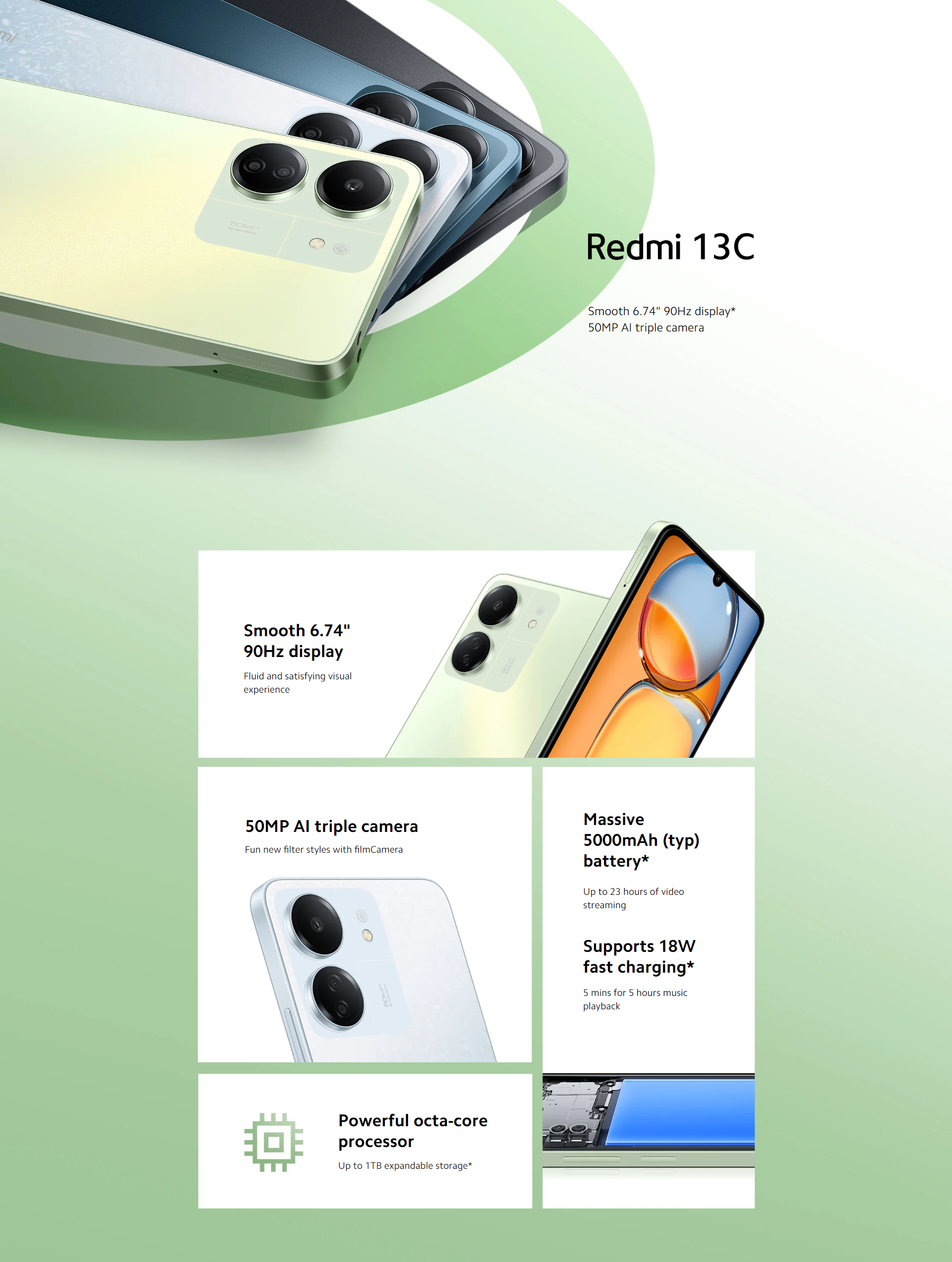 Xiaomi Redmi 13C 4G Smartphone (Double SIM, 8+256Go) - Navy Blue Xiaomi Redmi 13C 4G Smartphone (Double SIM, 8+256Go) - Clover Green